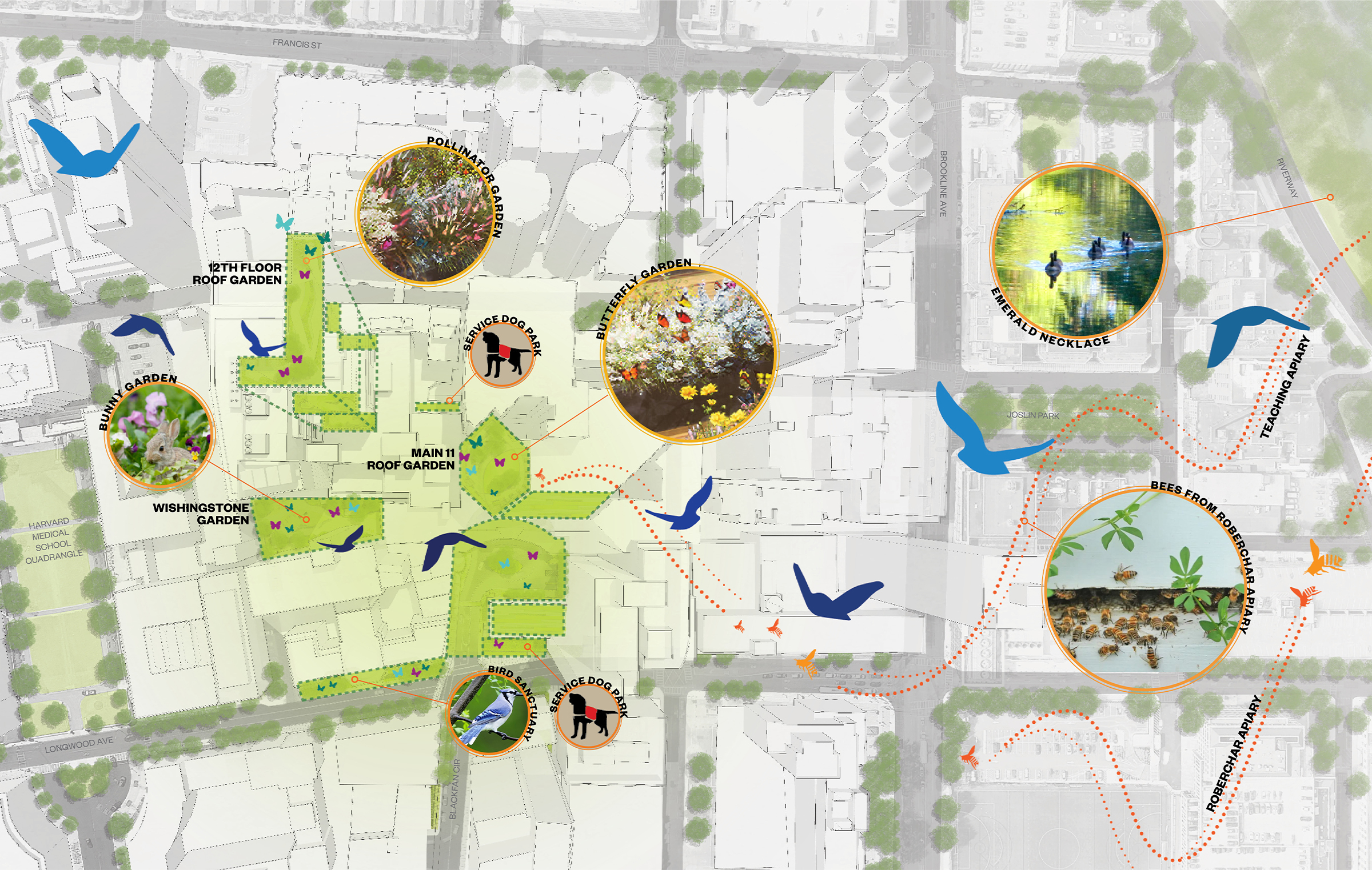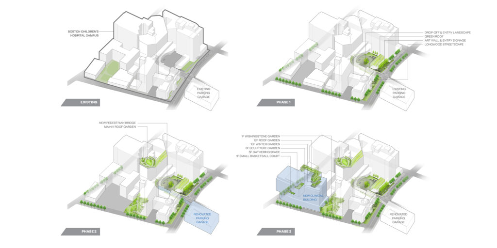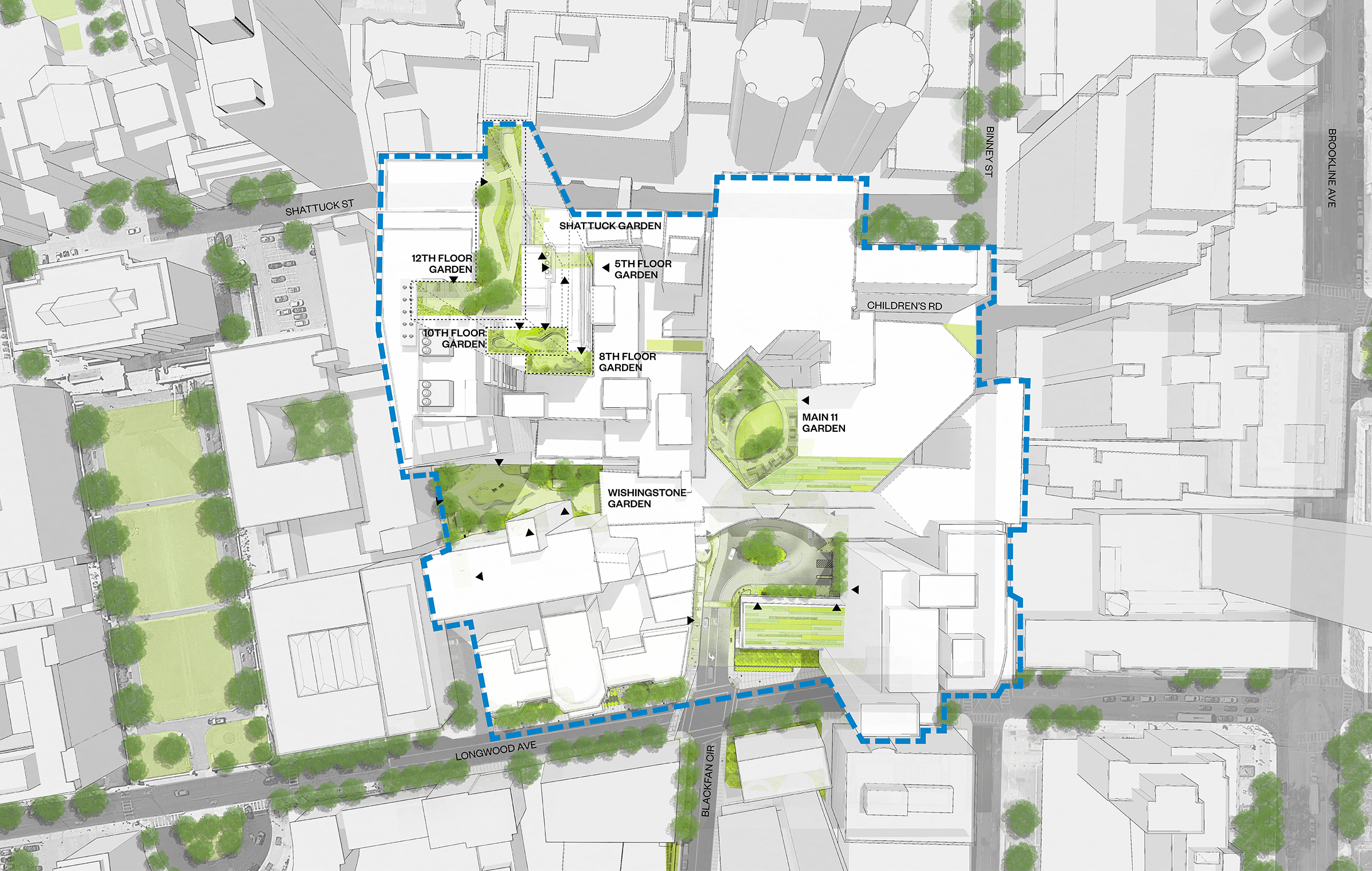As part of a comprehensive transformation of Boston Children’s Hospital’s main campus in the Longwood Medical District, a Green Masterplan has been collaboratively developed with Shepley Bulfinch and the BCH community to integrate gardens throughout both existing and new buildings within this urban campus. This innovative vision allows for designs tailored to individual needs, ensuring that gardens are effectively positioned in relation to patients, caregivers, and families, both now and in the future.