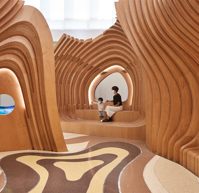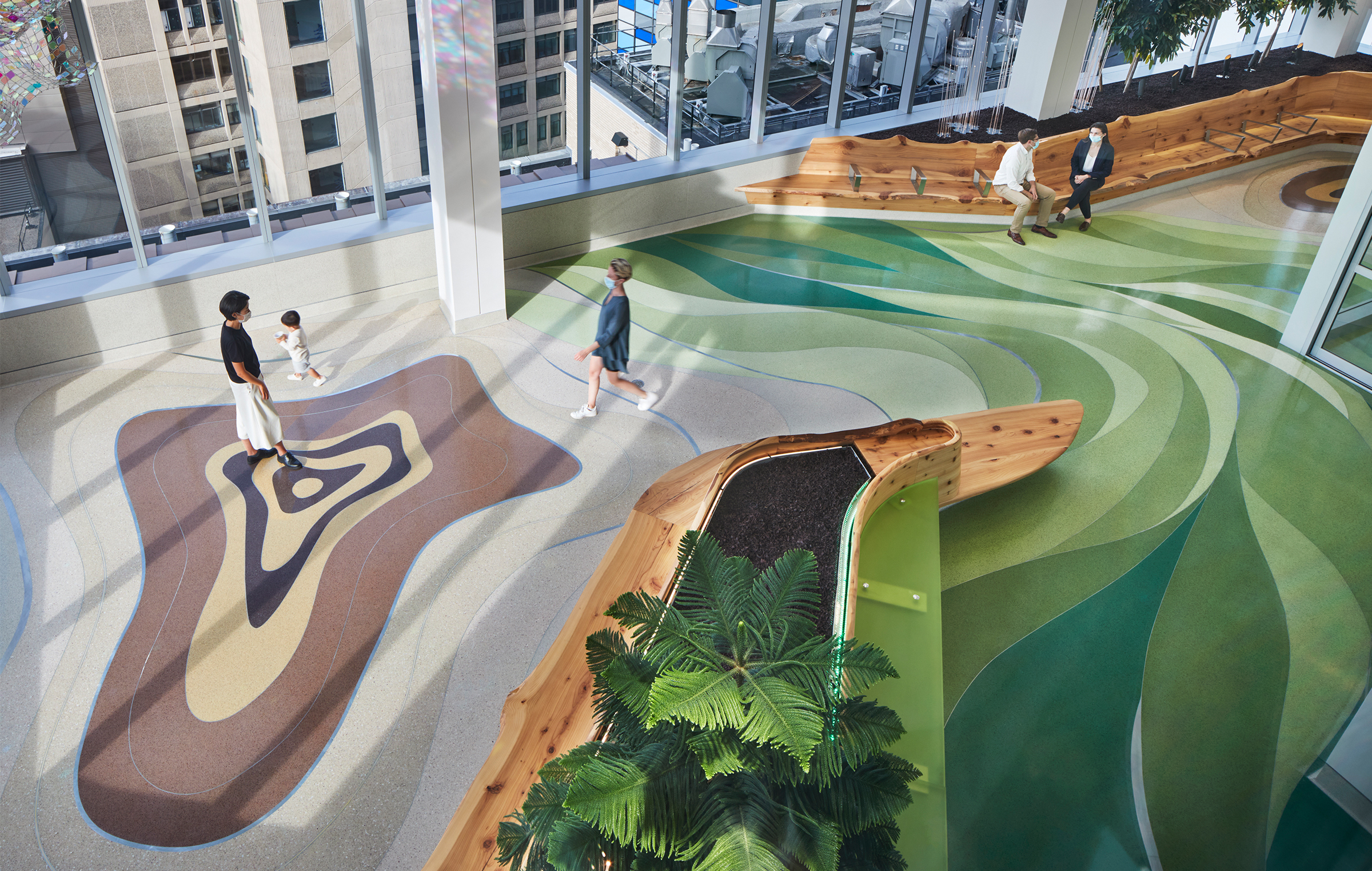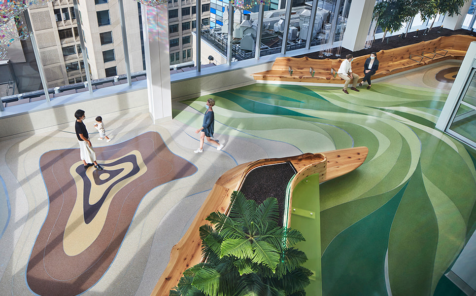 These interior gardens incorporate biophilic design concepts that support the recovery of pediatric patients and their families.