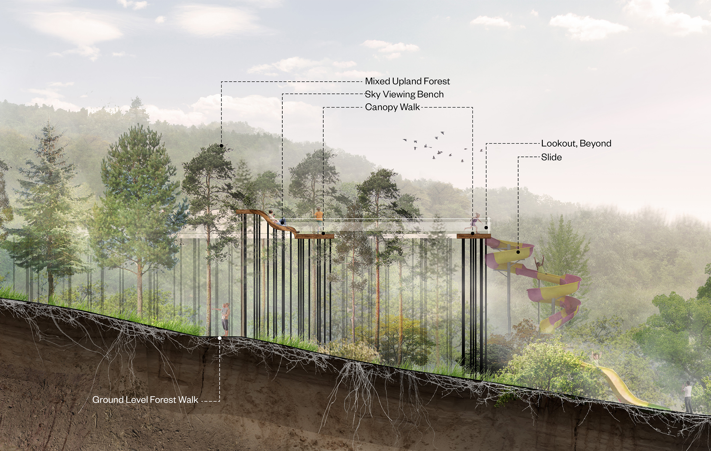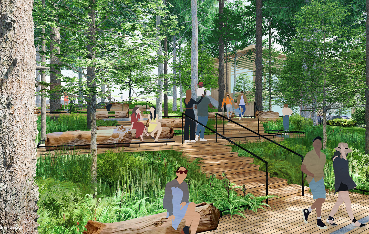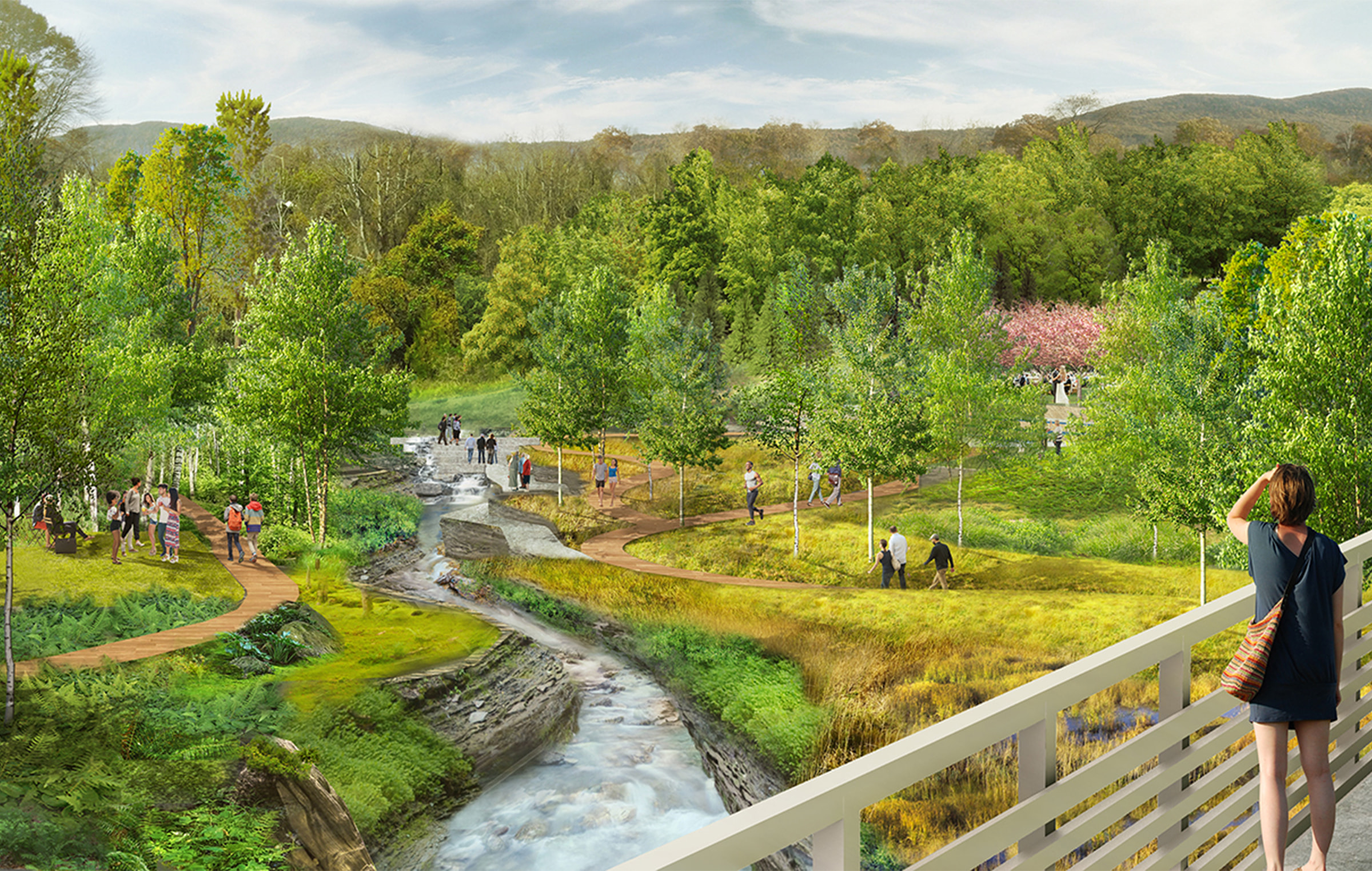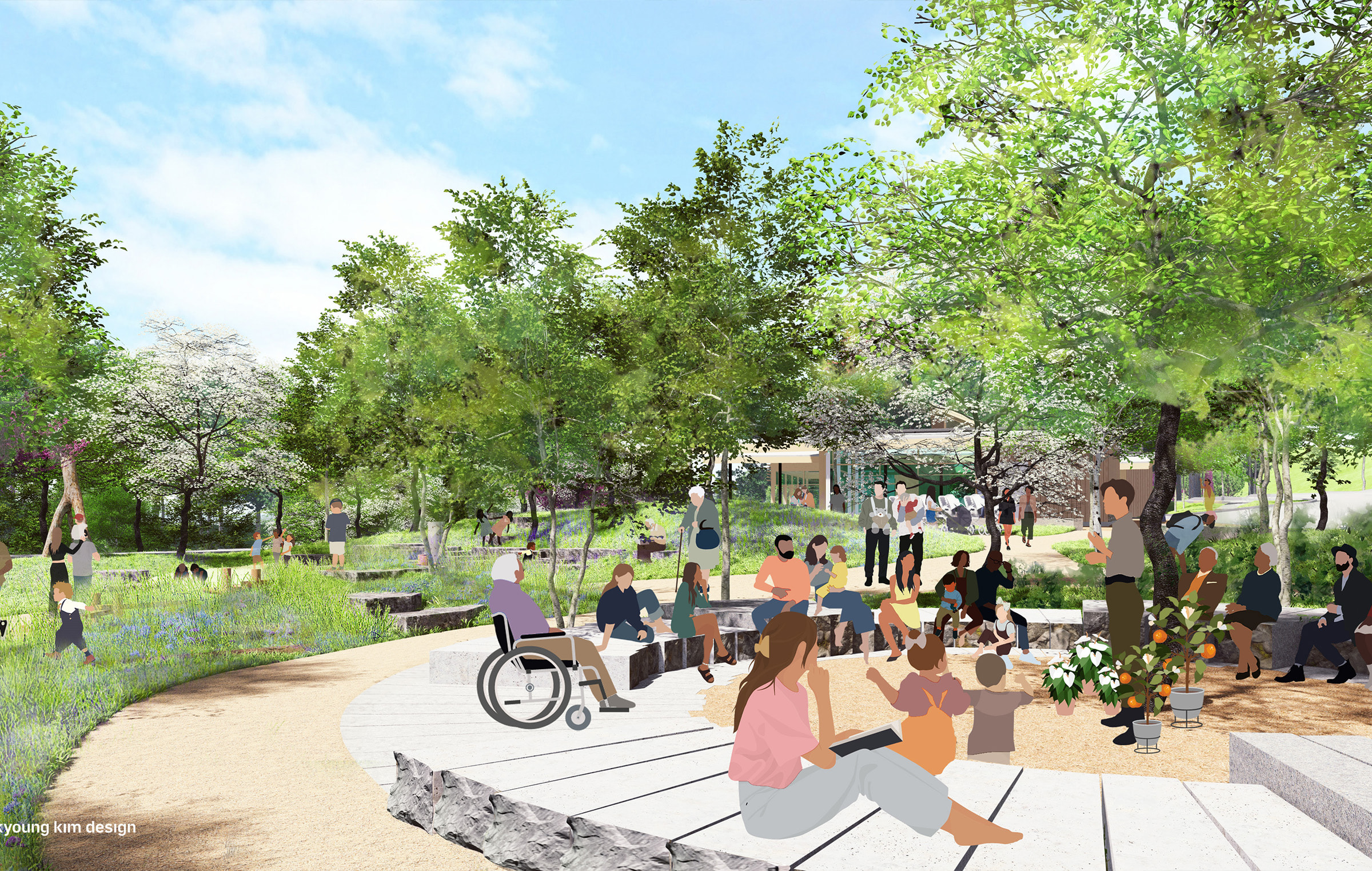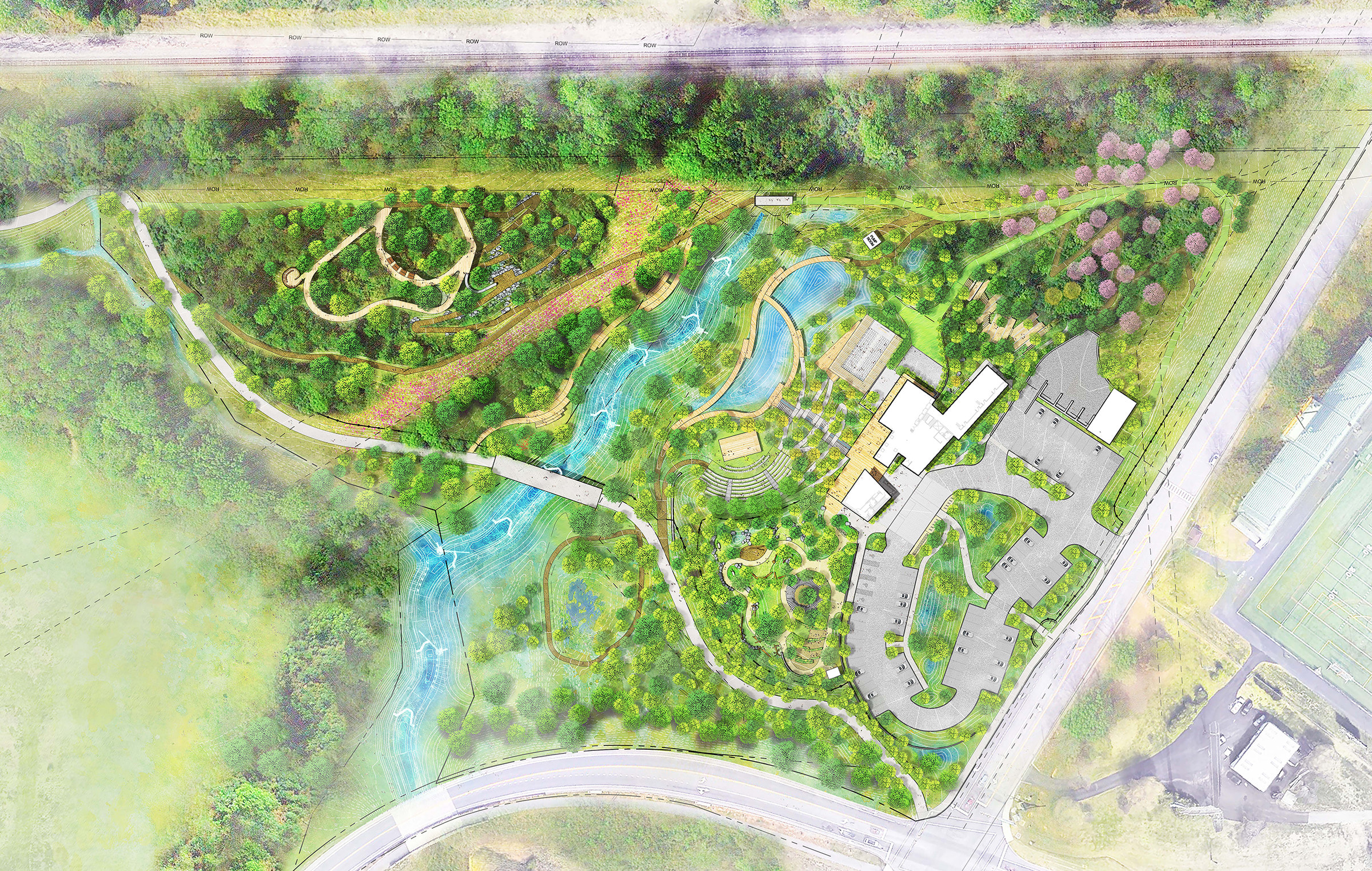The Botanical Garden of the Piedmont, spanning 8.5 acres, is designed as a vibrant and resilient park dedicated to botanical exploration. This expansive landscape will feature diverse nature discovery gardens, including native meadows, serene pine groves, a cascading waterfall, and a rain garden, all designed to invite visitors to engage with and connect to the natural world. An amphitheater and event space will accommodate both public and private events, generating revenue while enhancing community engagement. Upon its completion, the garden will highlight evolving definitions of native plants and incorporate sculptural elements, offering a contemporary and enriching botanical experience.