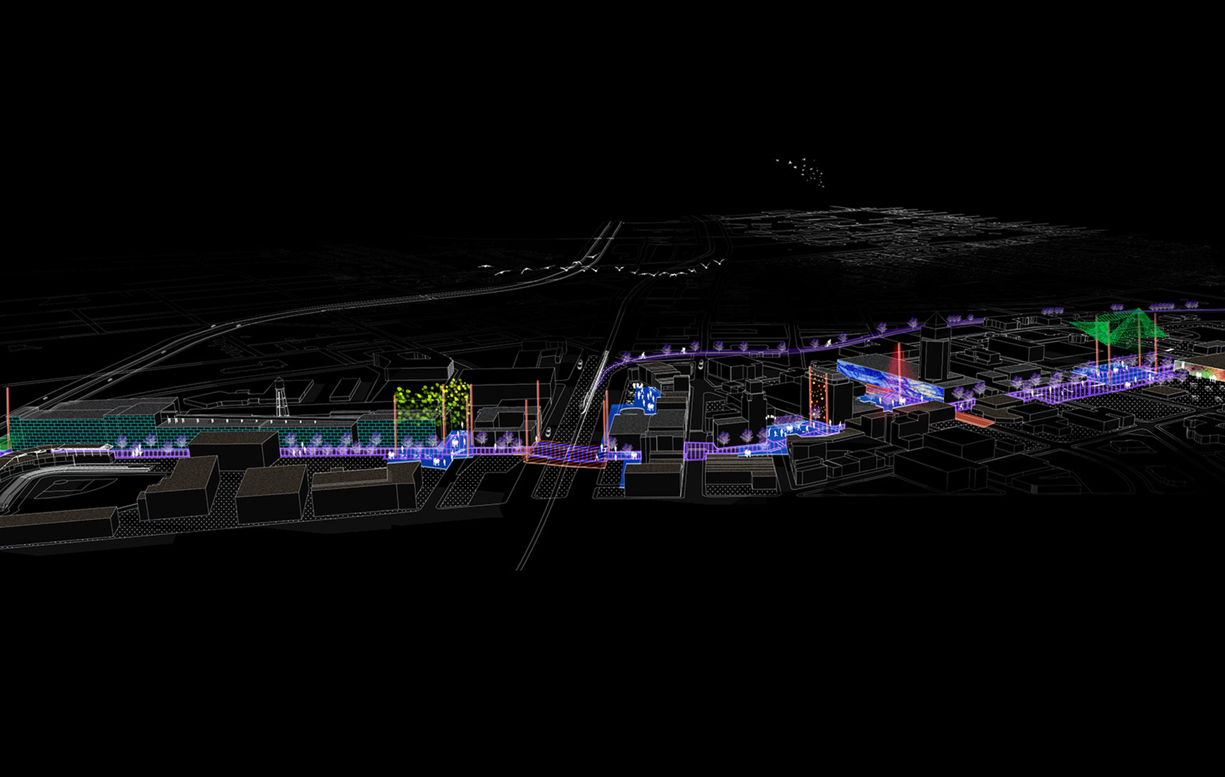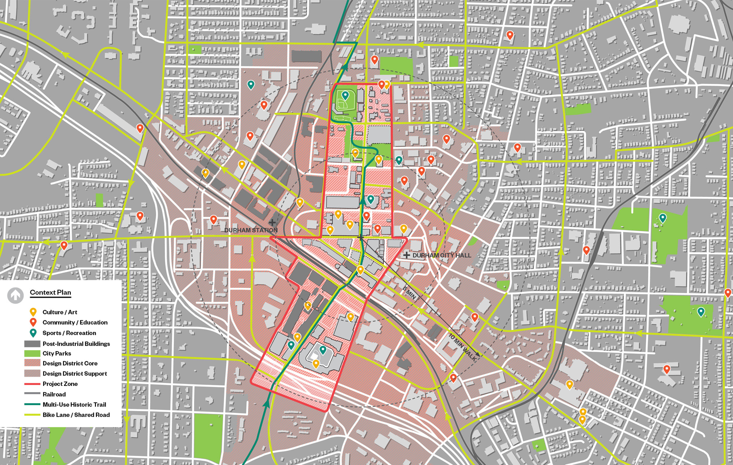 To achieve this vision, a bold strategy unifies the Downtown Corridor and establish a strong, consistent visual identity that distinguishes it as a culturally diverse and vibrant urban center. By focusing on the pedestrian experience, the Vision Plan weaves a narrative that connects key cultural landmarks throughout Downtown Durham.