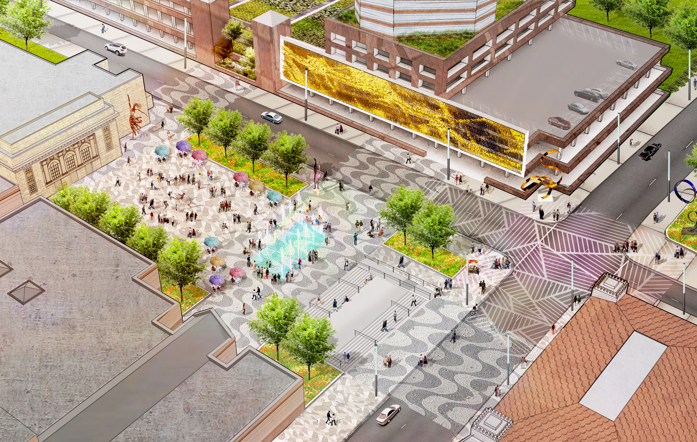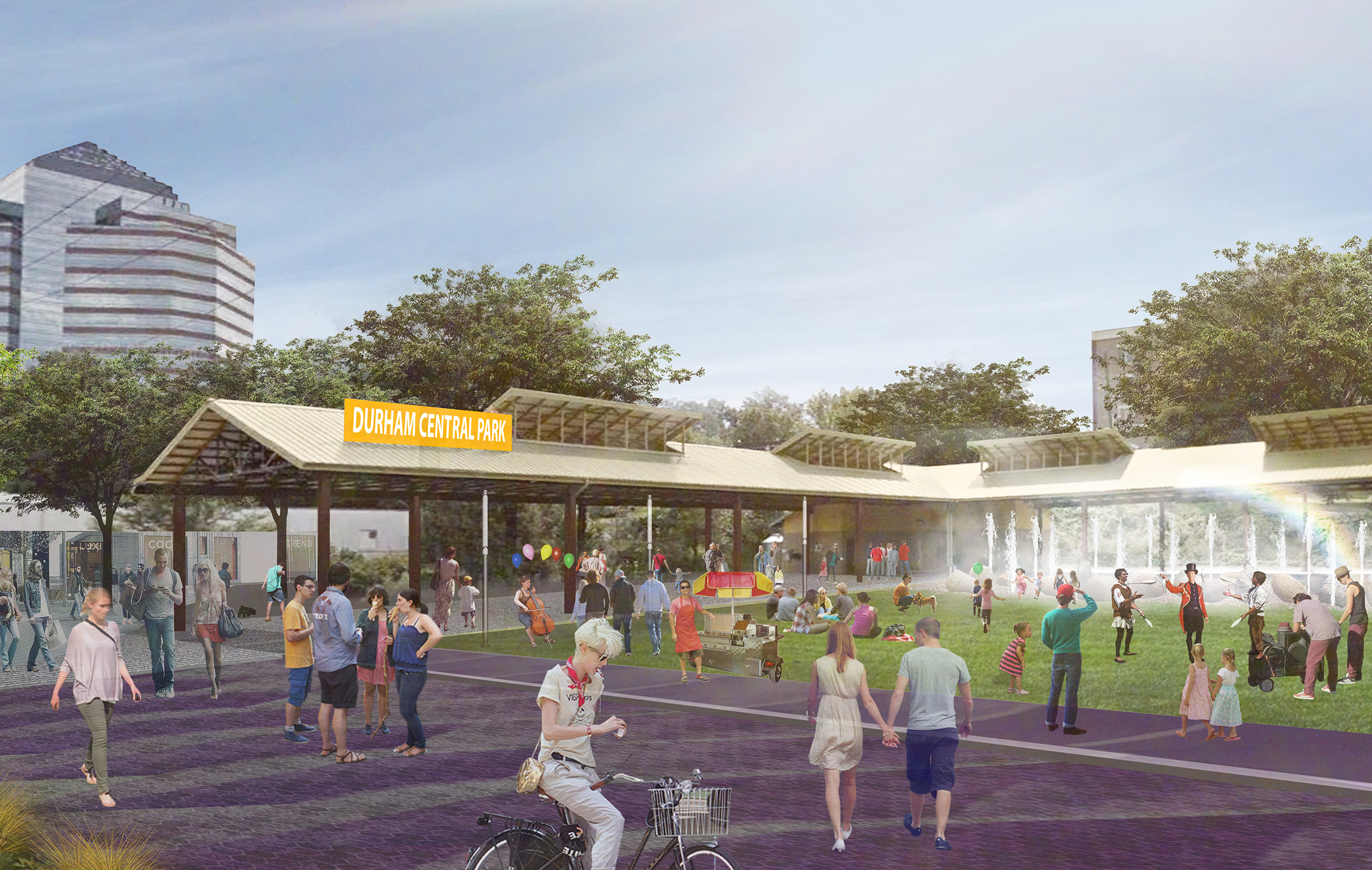 The Vision Plan aims to transform Downtown Durham into a premier destination for art and cultural programs in the region with a central axis for art and culture. This plan serves as a roadmap for developing the urban corridor into a vibrant setting for residents, visitors, artists, and businesses, establishing “a cultural quilt of experiences” enriched by green spaces, plazas, lively avenues, and public art that converge to create a shared urban life.