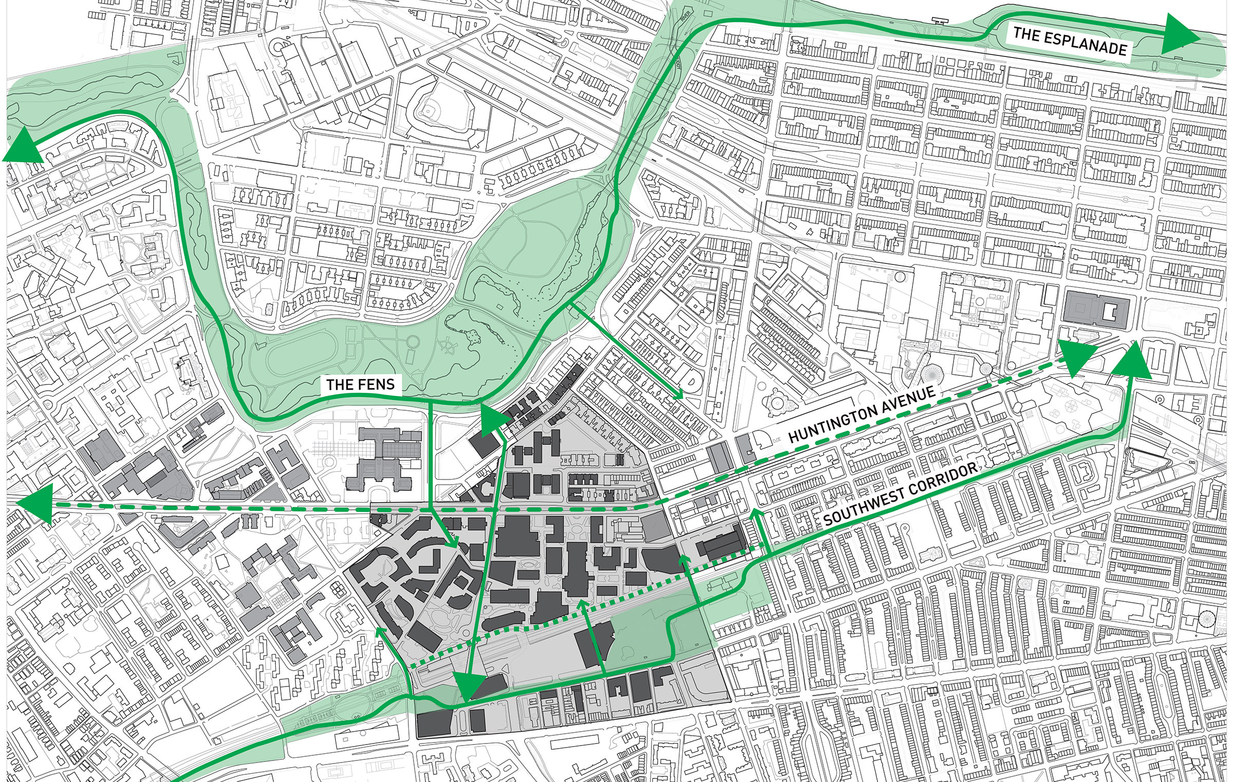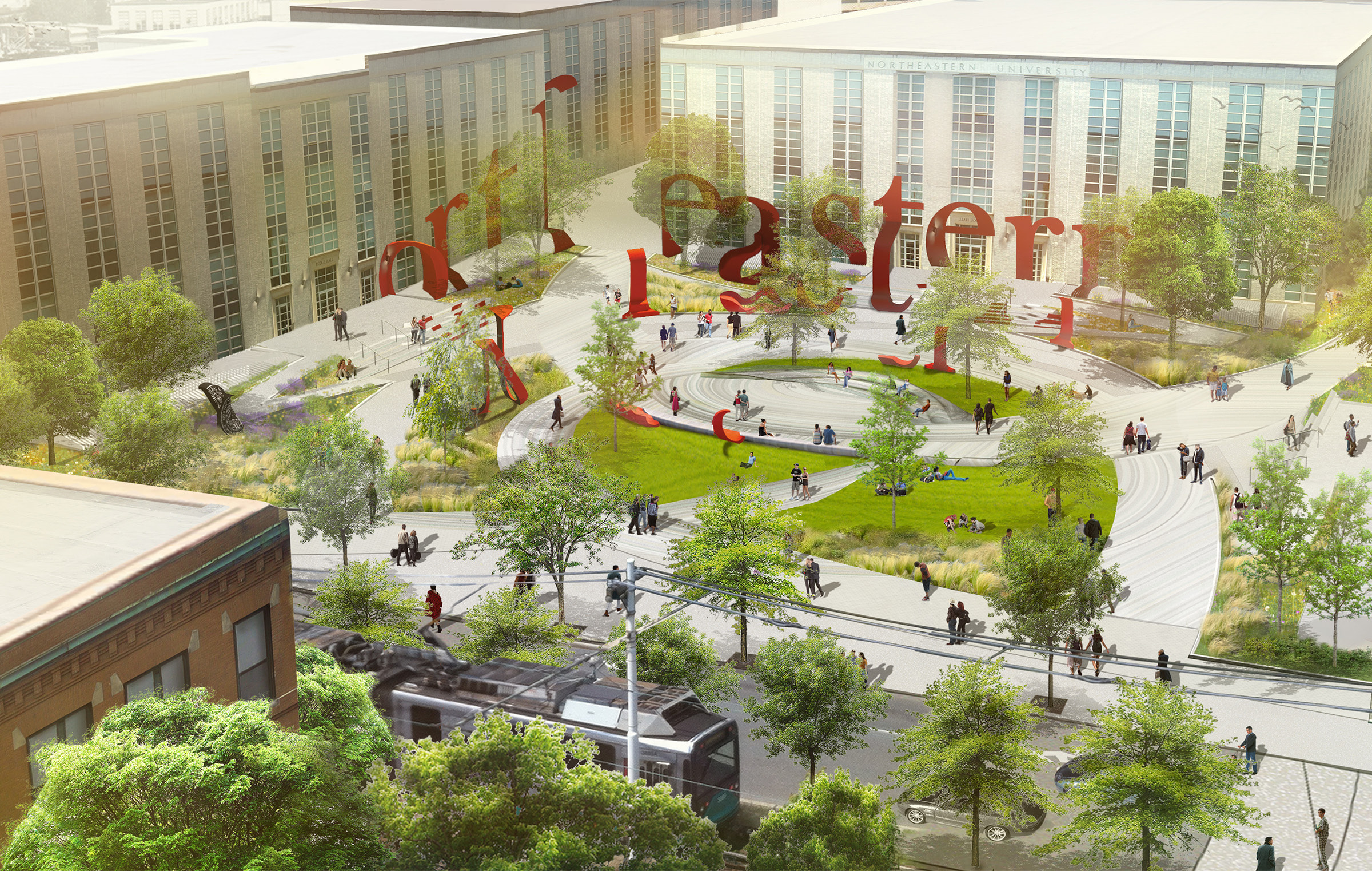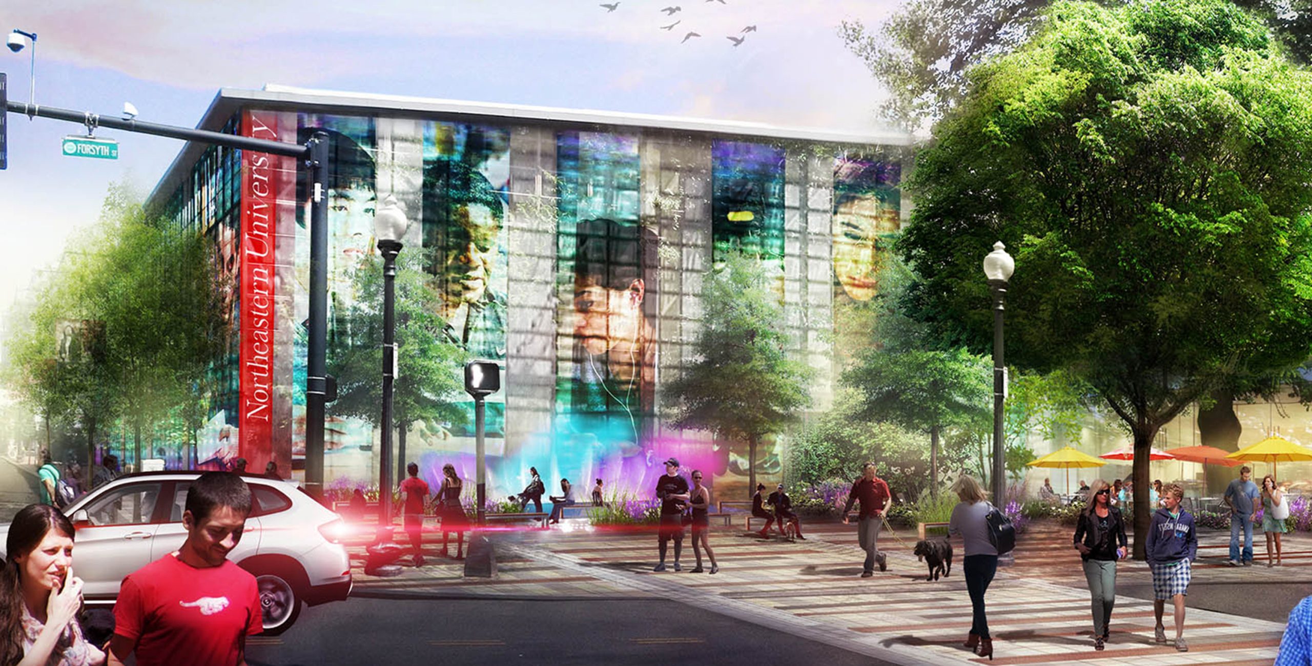 The Northeastern Avenue of the Arts campus masterplan aligns with its academic mission to foster meaningful engagement in the world, leveraging knowledge and resources as a positive force for change in both the local community and the global society. This comprehensive Vision Plan enhances the international campus identity integrating the influence of diverse cultures from around the globe. The masterplan focuses on thresholds and gateways opening up the campus on Huntington Avenue to the city at large, linking the major cultural institutions like the Museum of Fine Arts to this creative campus. The plan incorporates diverse and native planting standards, streetscape enhancements, and sustainability initiatives which includes a newly established campus arboretum. This plan aims to create a cohesive global campus within Boston, enriching the educational and cultural arts experience, while promoting environmental stewardship.