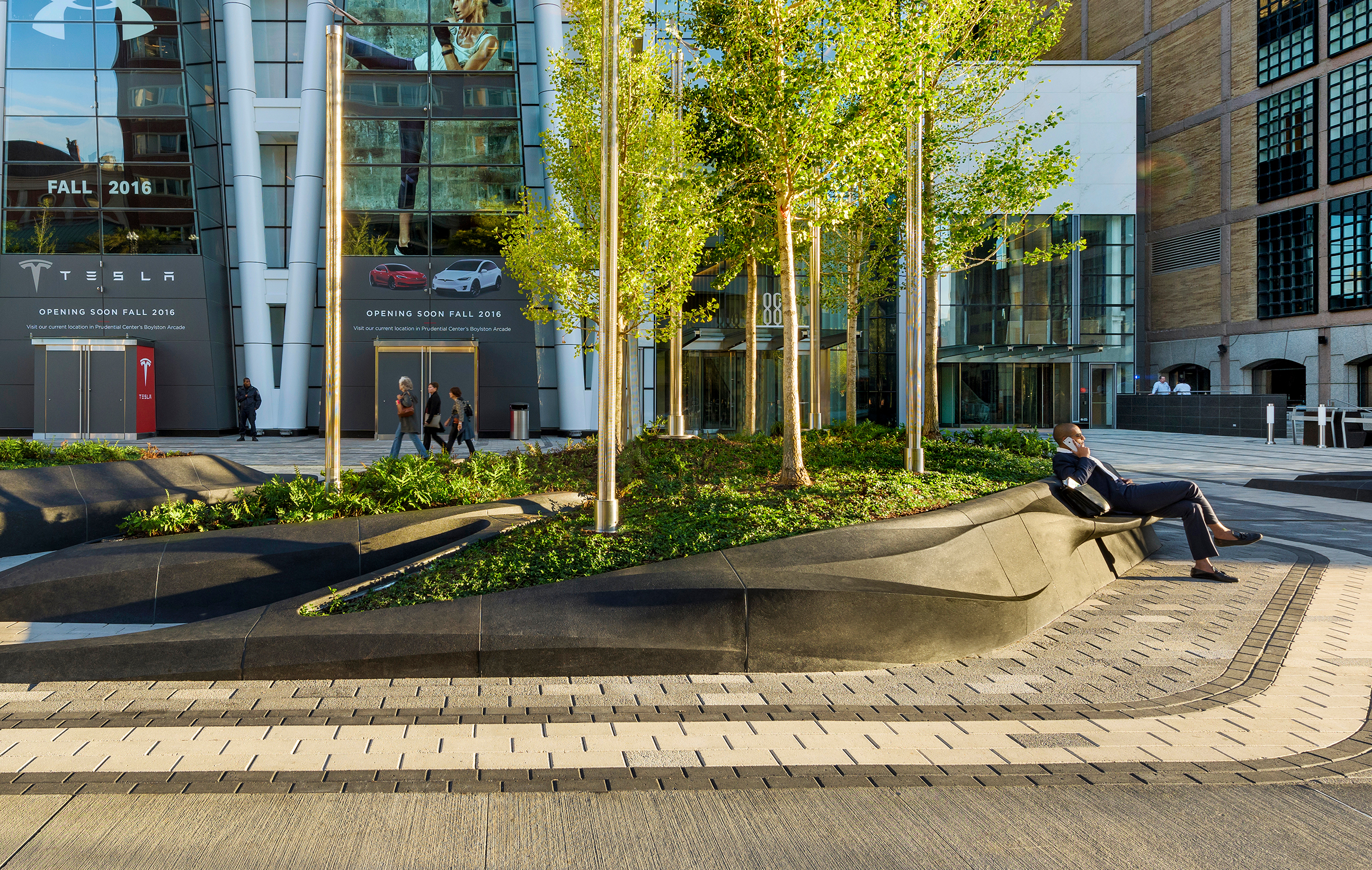 Nestled in Back Bay Boston, between the Mandarin Oriental Hotel and the bustling Hynes Convention Center, this mixed-use urban plaza serves as the welcoming gateway to the Prudential retail and office tower at 888 Boylston. The plaza is vibrantly activated through a blend of seasonal programming and celebratory events, such as the iconic Boston Marathon. Retail establishments within the plaza draw visitors in, providing inviting spaces for café seating and tranquil garden nooks where the public can relax and enjoy the surroundings. This thoughtfully designed environment fosters community engagement and enhances the overall experience for both locals and tourists alike.
